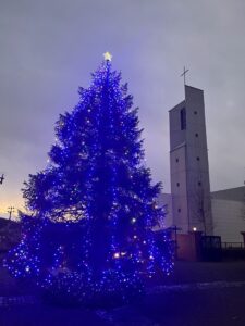 12月1日(月)、学園のクリスマスツリーが美しい光に包まれ、待降節のはじまりを彩ります。